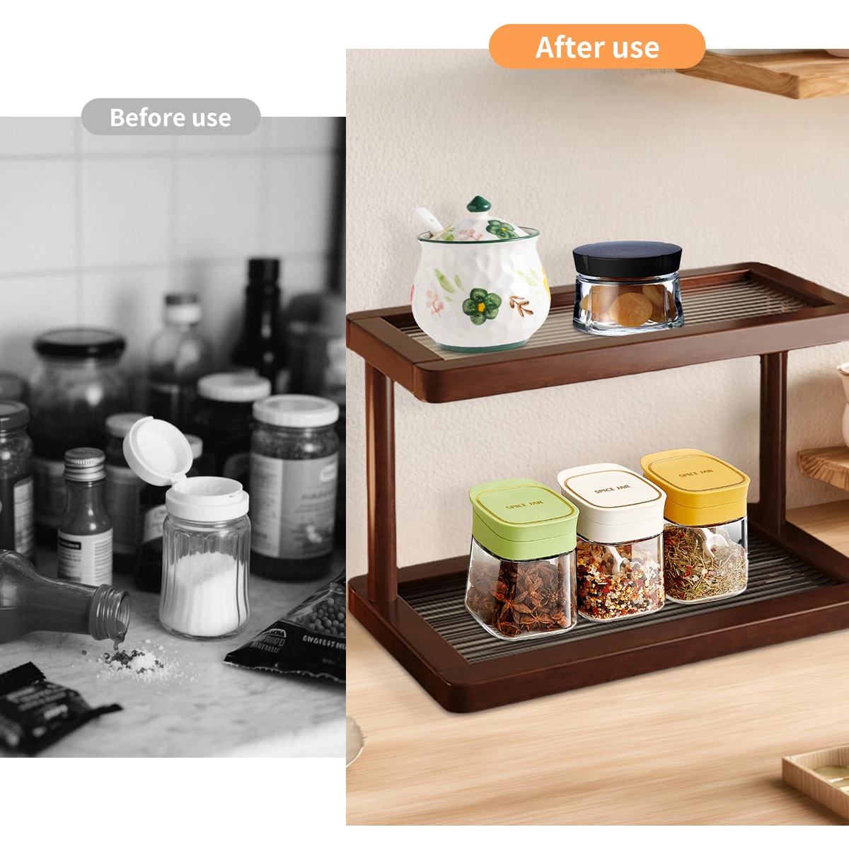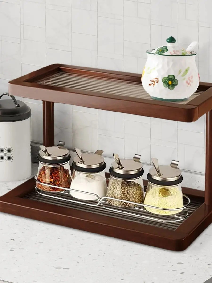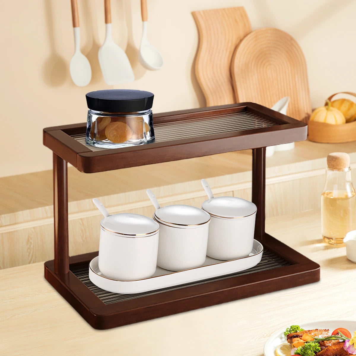 Bamboo 2-Tier Vanity Organizer with Acrylic Base, Eco-Friendly Cosmetic/Perfume Storage Rack for Bathroom & Kitchen (Walnut)