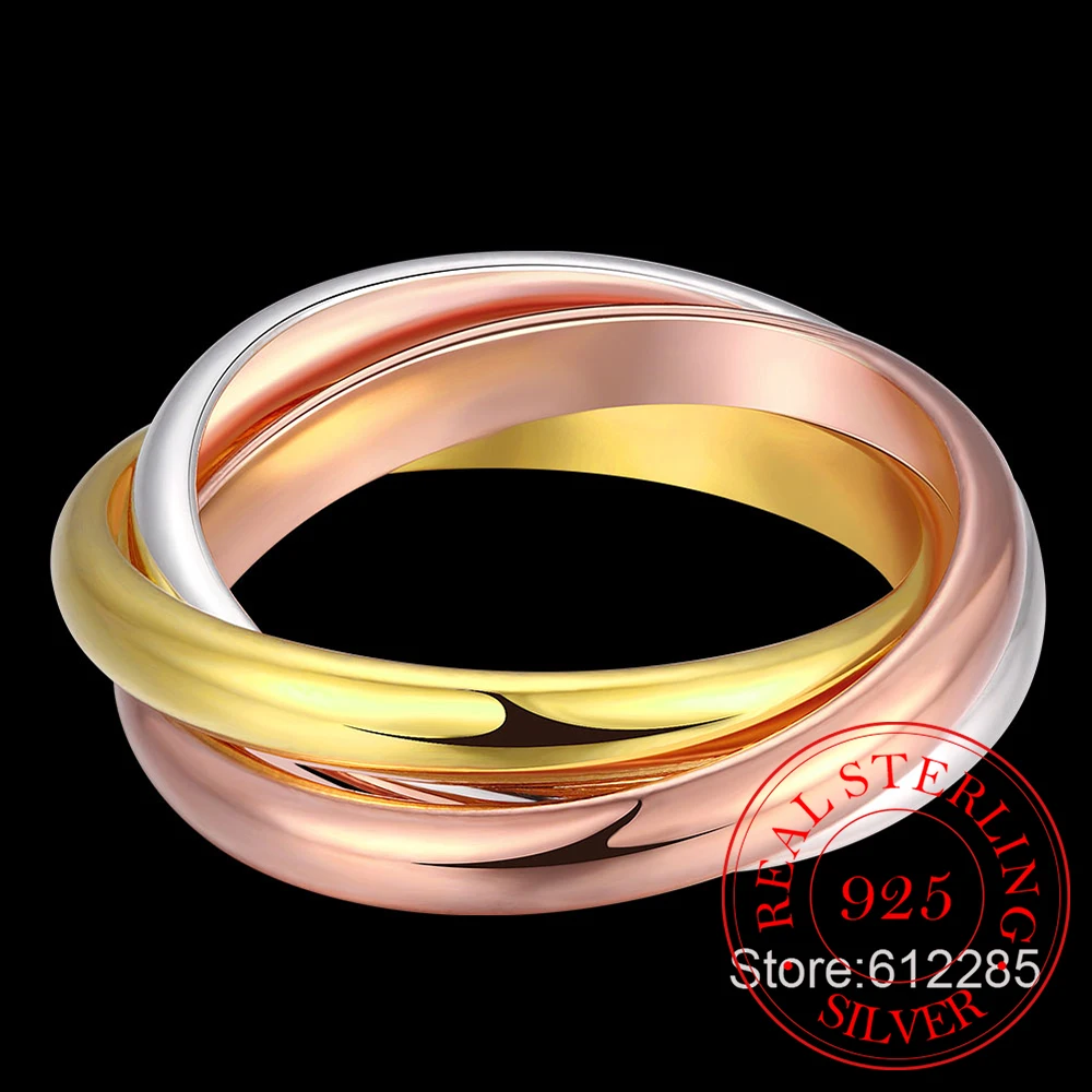 Best Gift! 925 Sterling Silver Ring,lover's Engagemet Jewelry,Three Color Circles Women&Men Gift Couple's Wedding Finger Rings