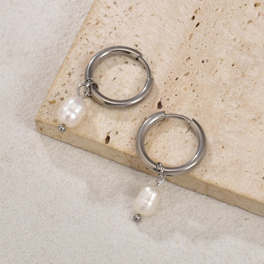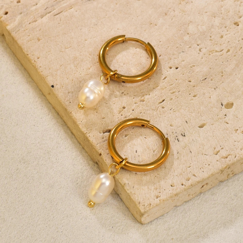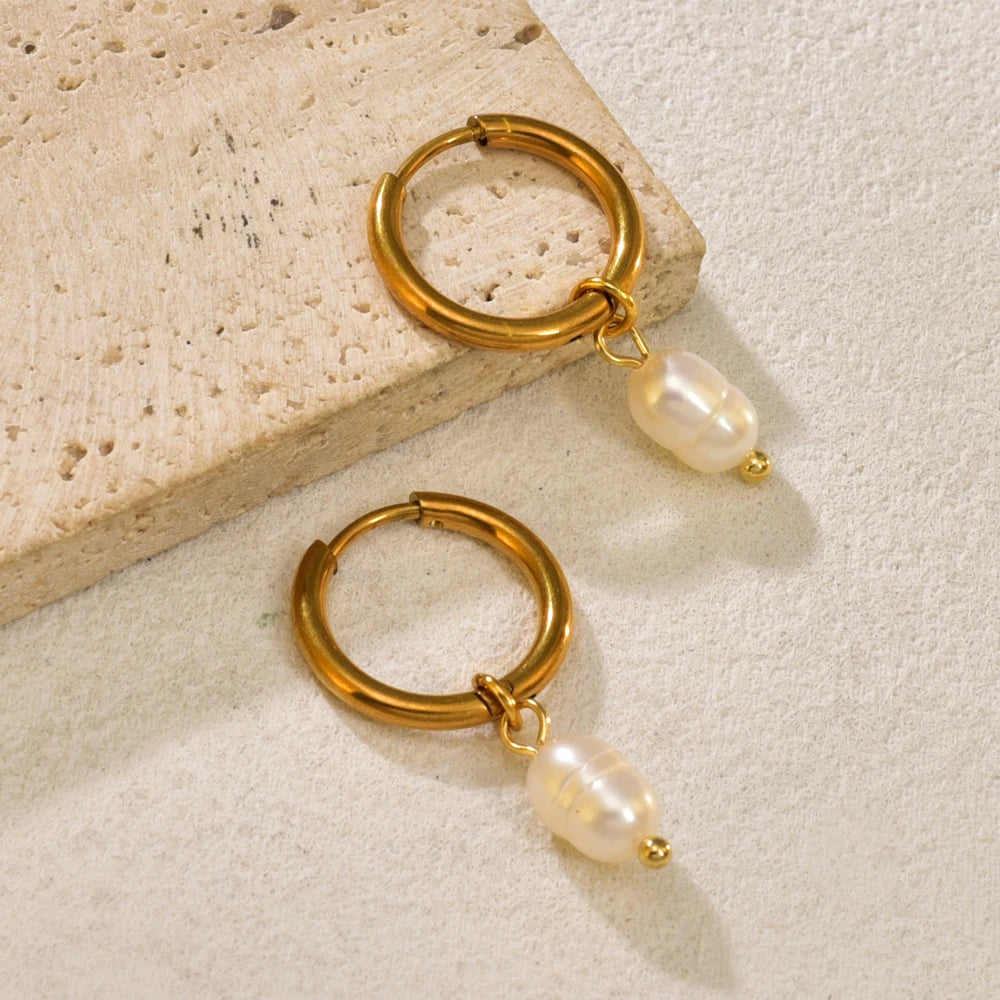 E110 fashionable and simple accessories: Stainless steel plated with 18K gold freshwater pearl gold ear rings