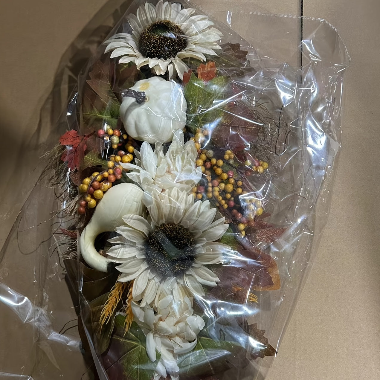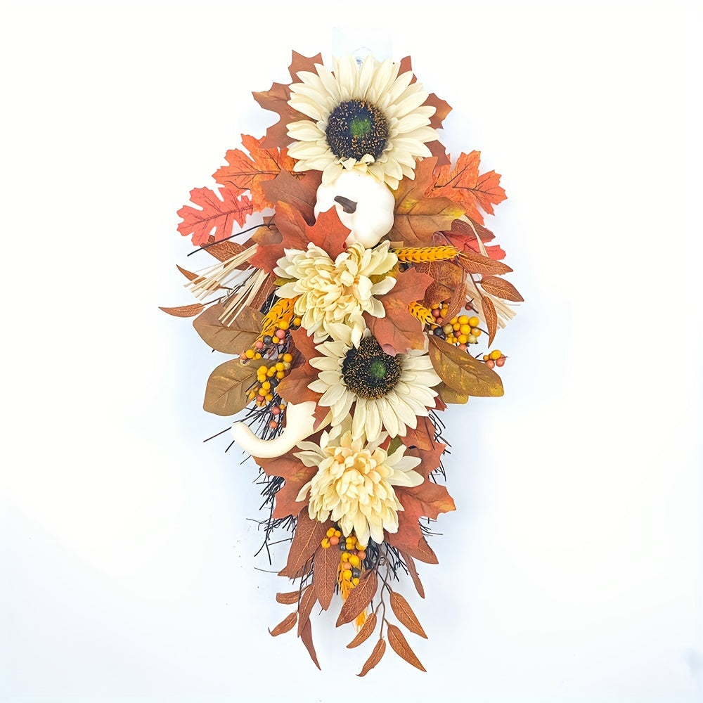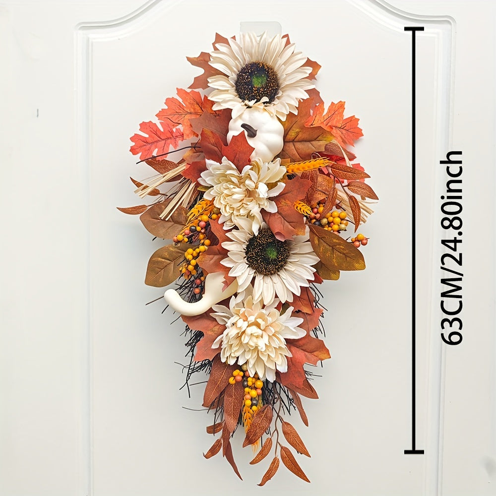 Farmhouse Style Fall Pumpkin Wreath - Thanksgiving Sunflower Door Decor, Outdoor Autumn Harvest Wreath, No Electricity or Feathers Required