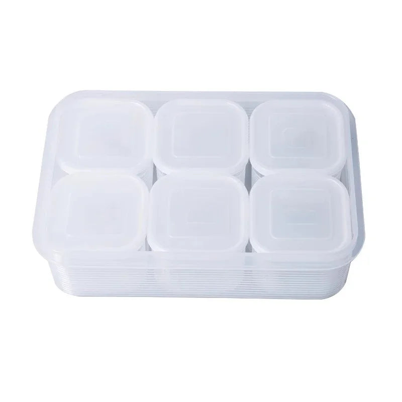 Food Storage Container 6 Grids Vegetable Fruit Fresh-keeping Box with Lid for Refrigerator Kitchen Spice Seasoning Storage Jar
