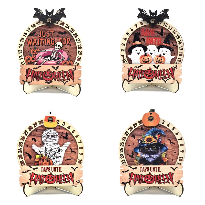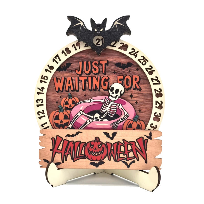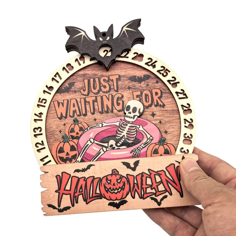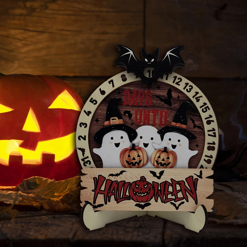Halloween Countdown Calendar Wooden Rotatable Calendar With Base Tabletop Decor For Home Holiday Party