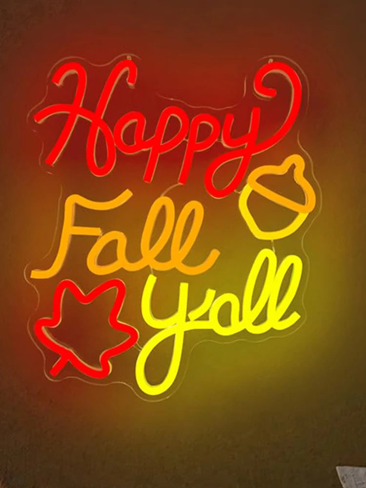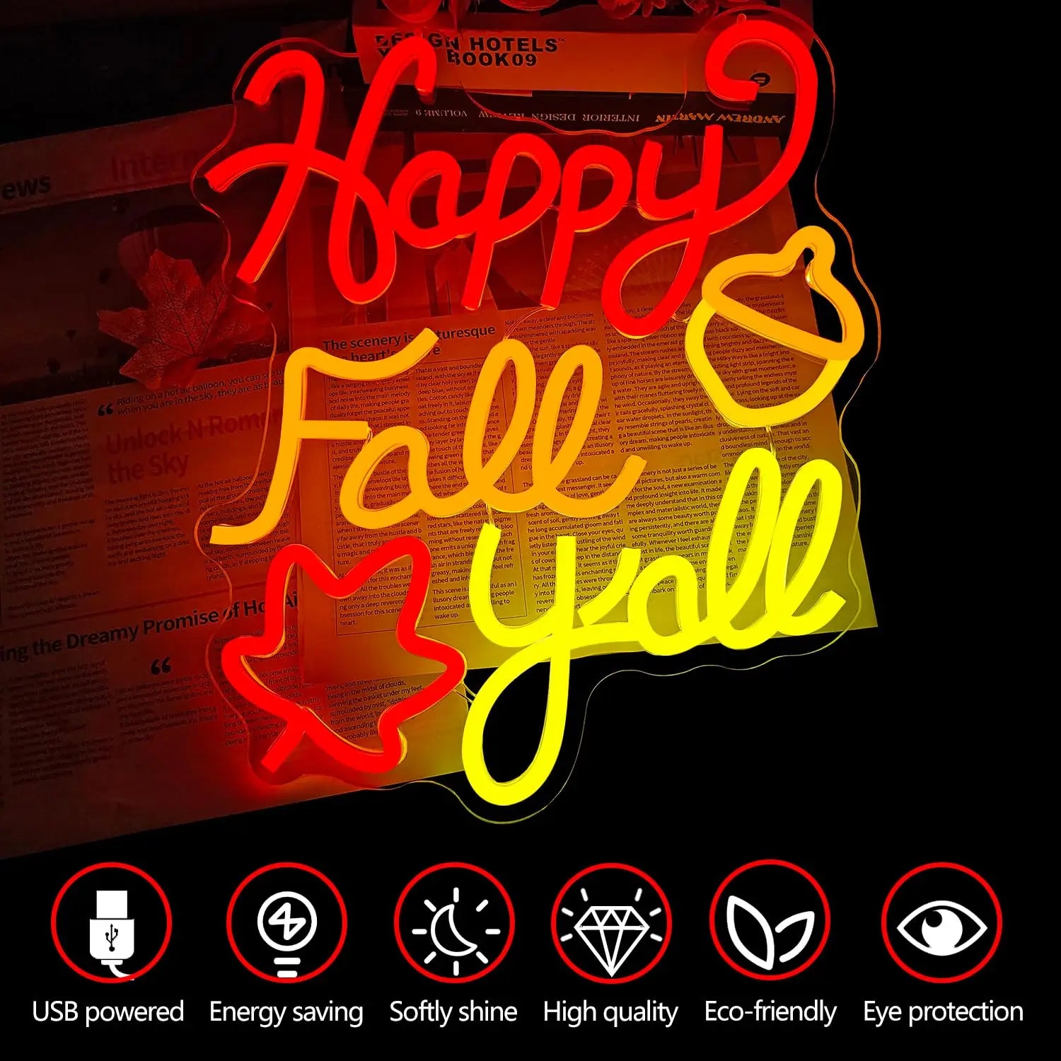 Happy Fall Yall LED Neon Sign Fall Decorations Dimmable Autumn Light for Wall Decor for Thanksgiving Party Home Fireplace