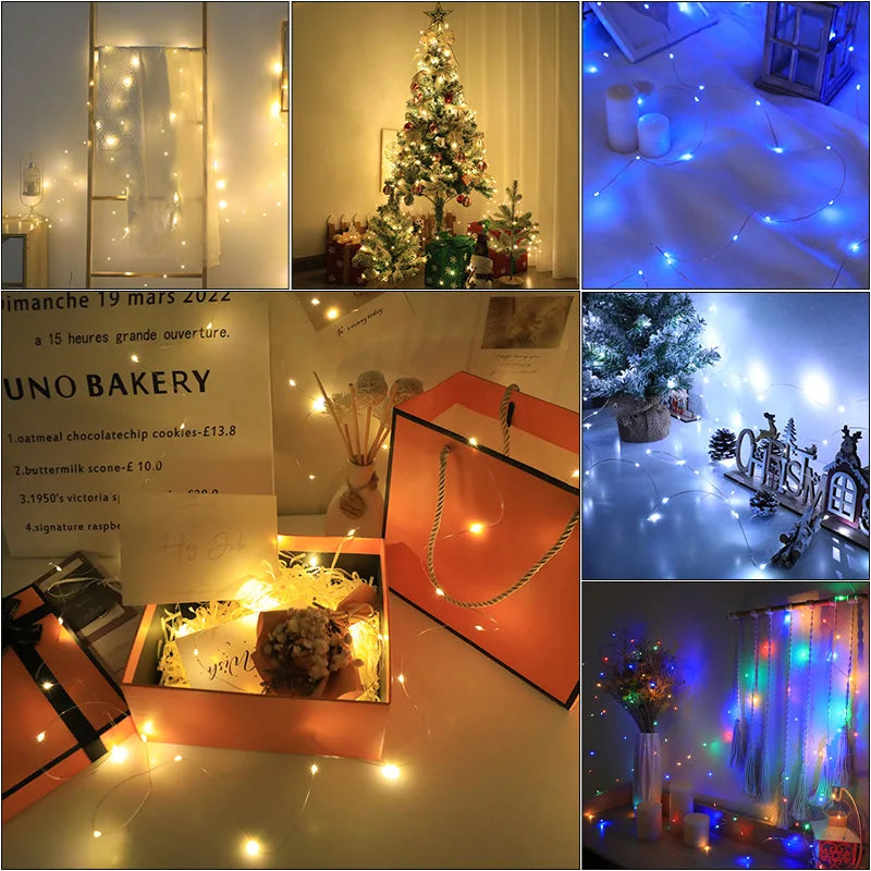 LED 3-cell Battery Box Copper Wire Multifunctional String Light For Outdoor Home Christmas Wedding Party Garden Decoration 3-20m