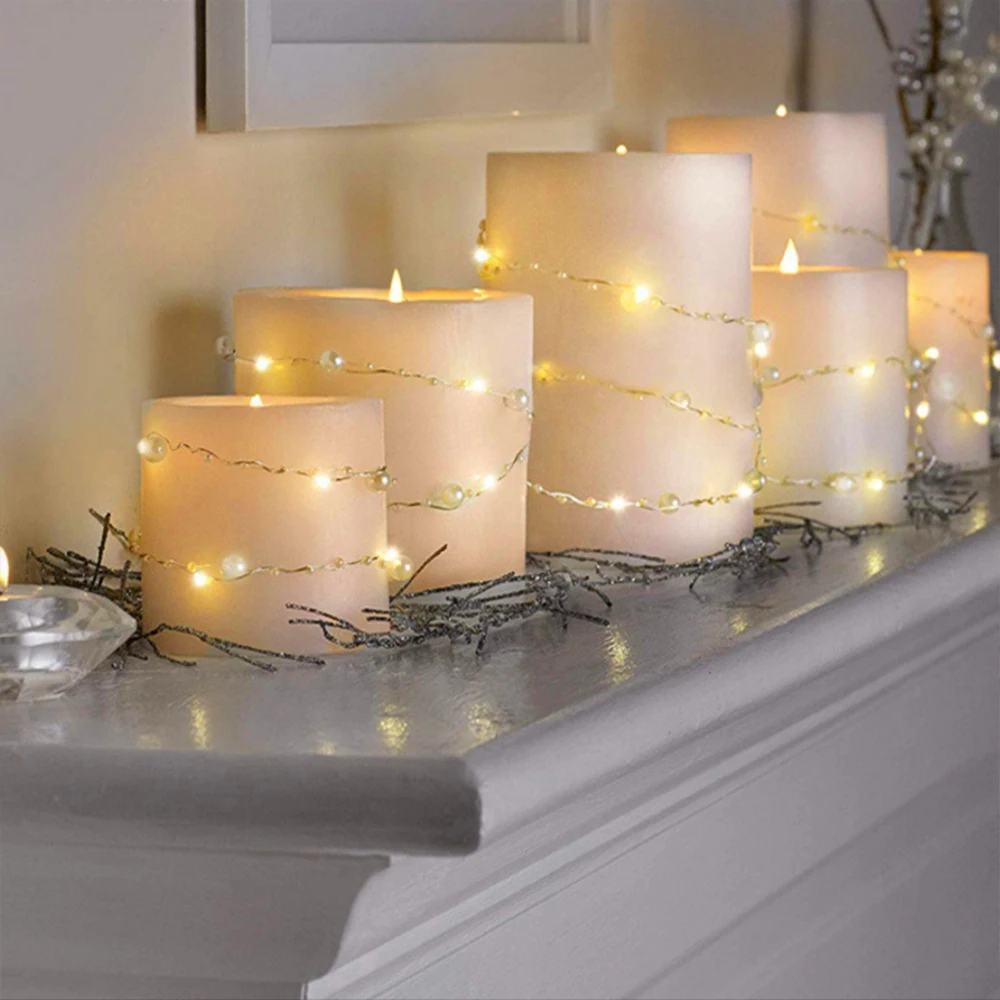 LED Pearl Copper Wire String Lights 2M 5M 10M Battery Power Garland Home DIY Fairy Lamps For Wedding Party Holiday Gifts