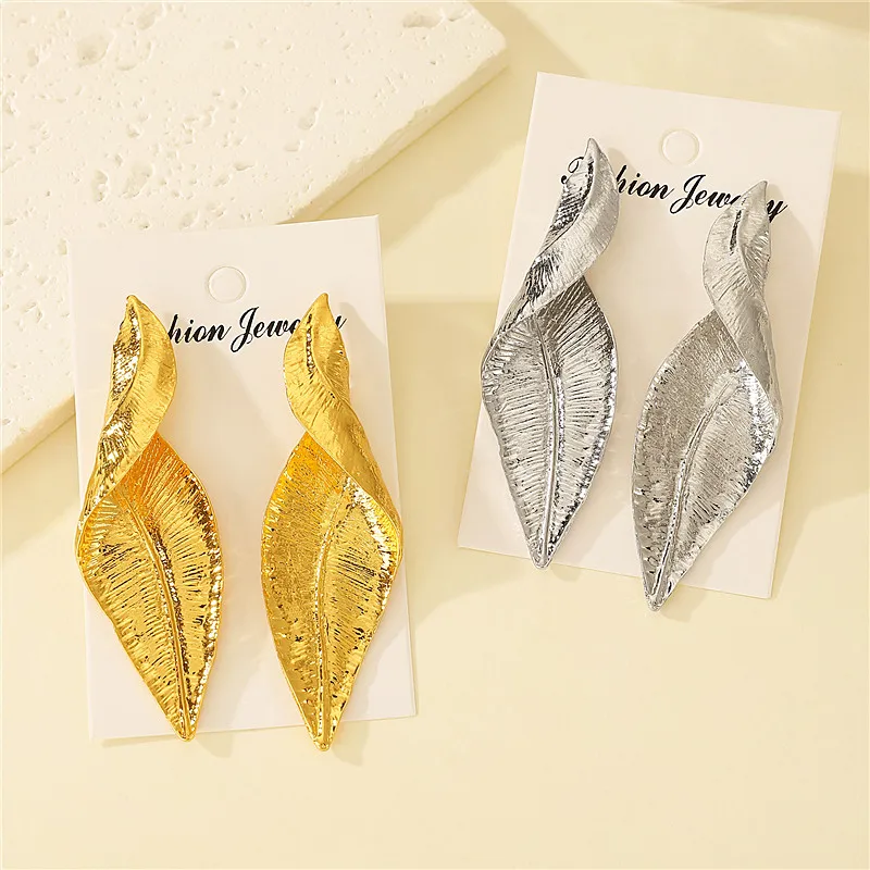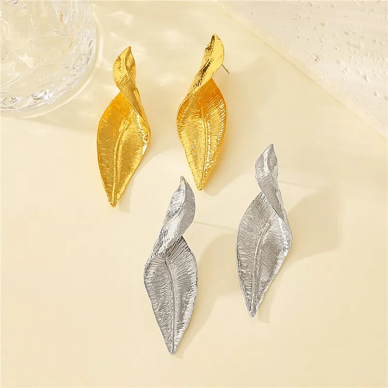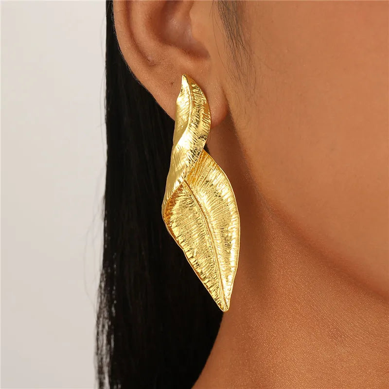 Retro irregular alloy leaf stud earrings women exaggerated minimalist earrings fashion party accessories