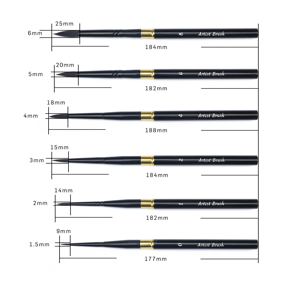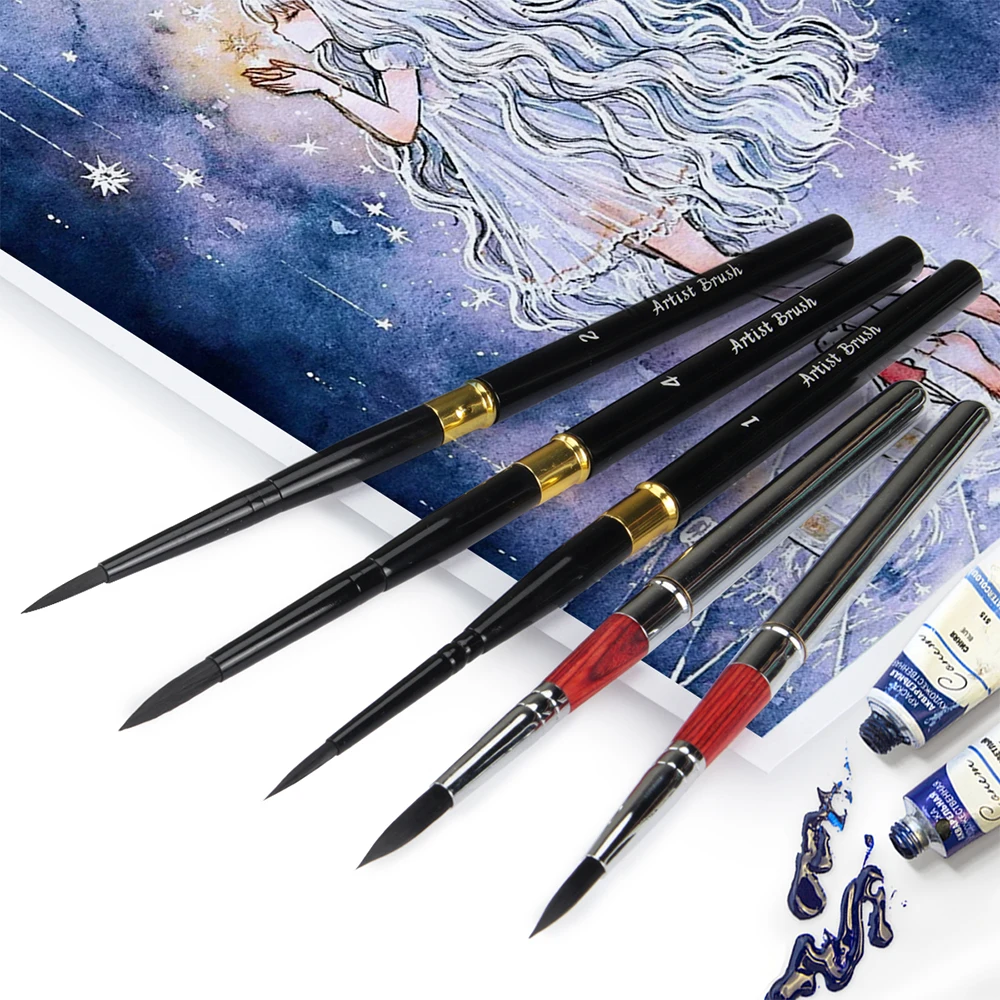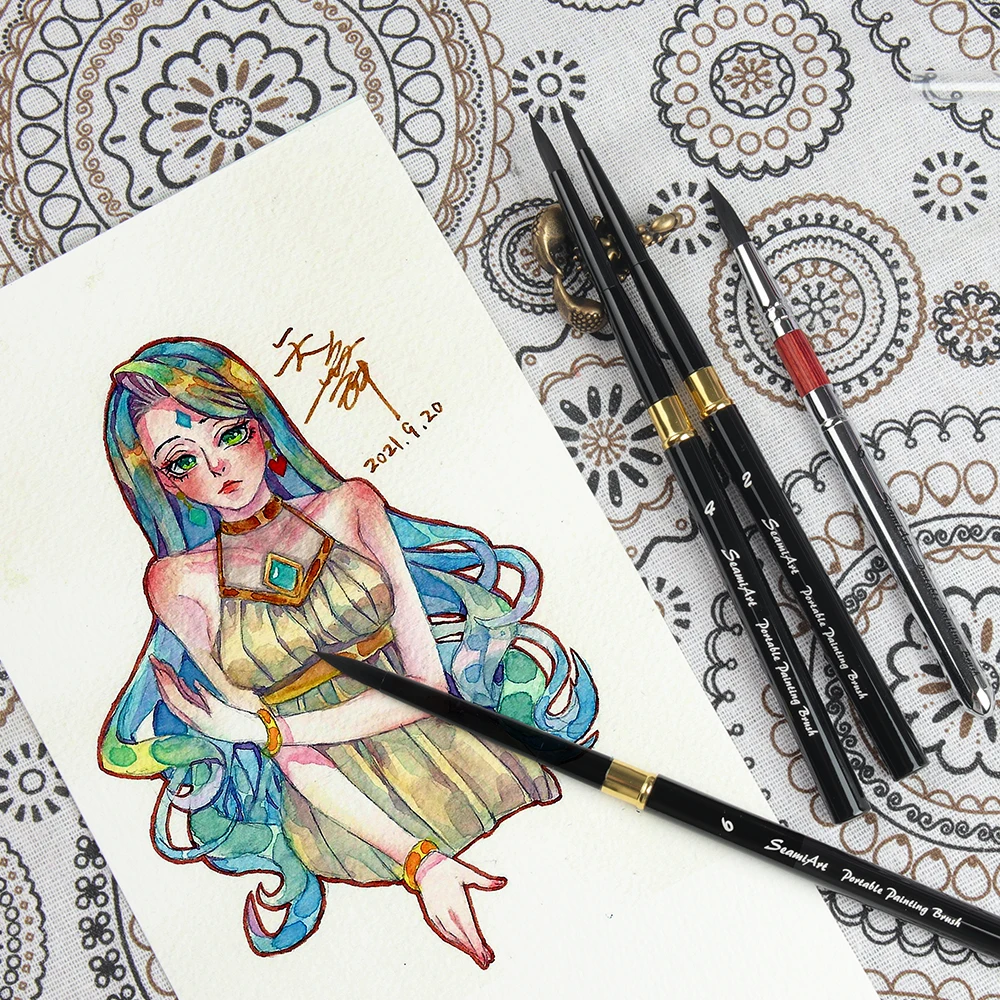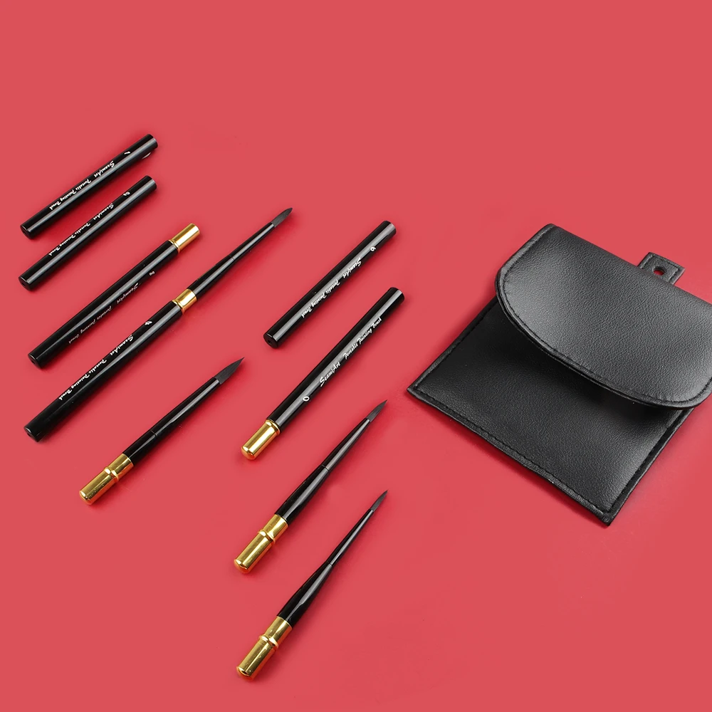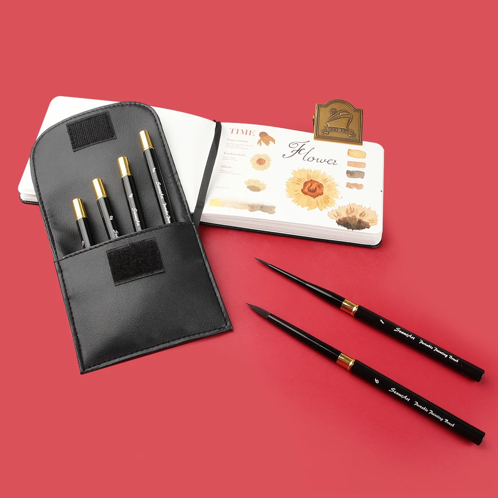 SeamiArt 6pcs/Set With Portable Pu Brush Bag DivIsible Short Holder Watercolor Journal Paint Brush for Art Supplies