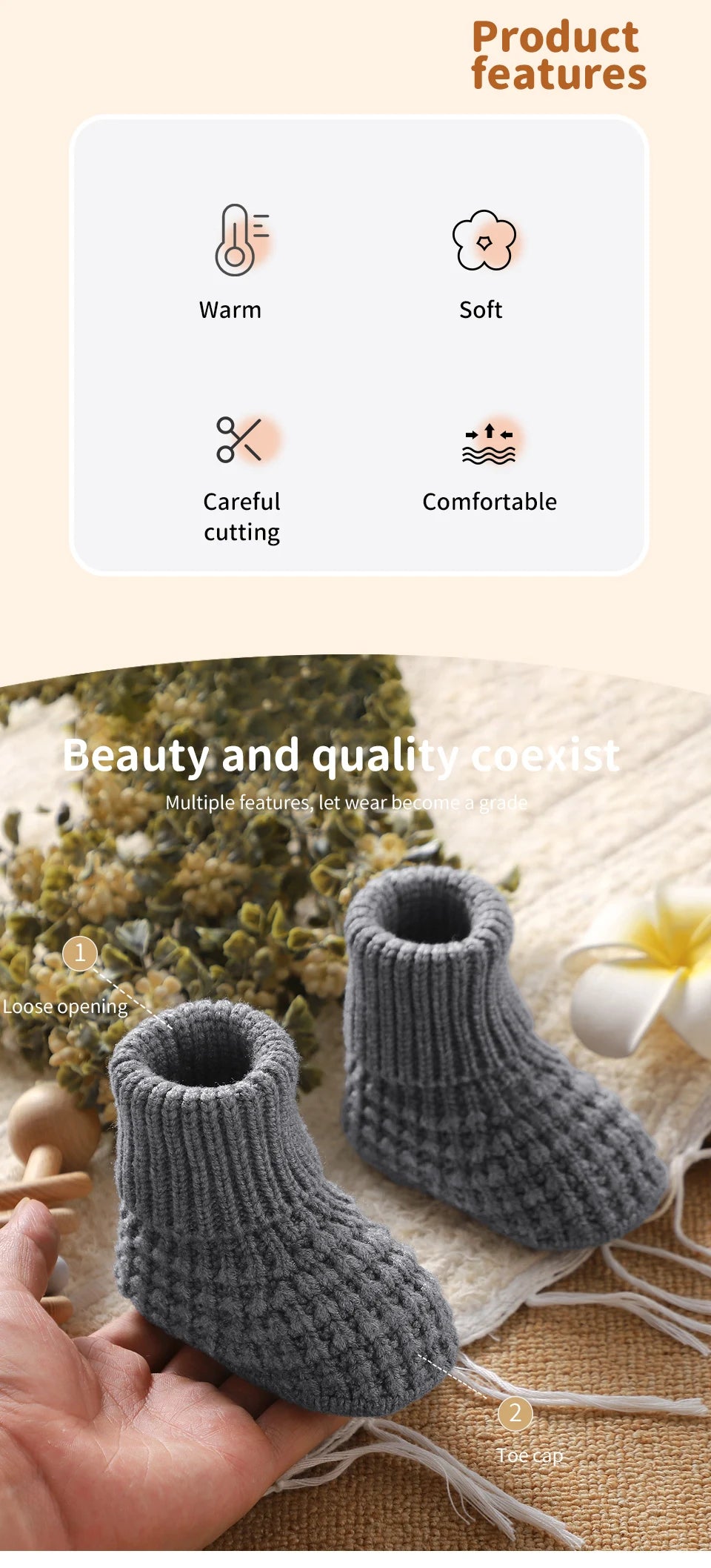 Soft Warm Knitted Newborn Booties Baby Boys Girls Socks Shoes Infant Unisex First Walkers 0-1Y Toddler Outdoor Indoor Crawl Crib